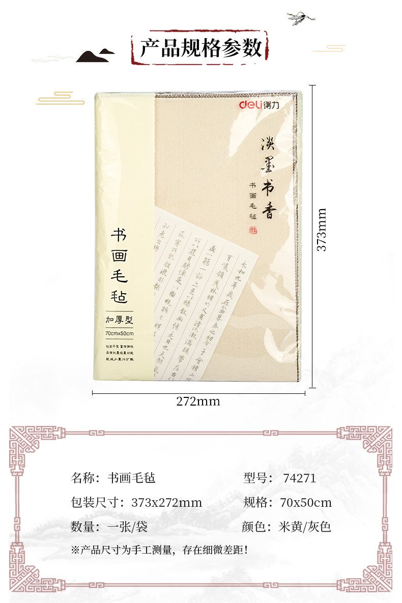NO---得力(deli)74271书画毛毡 初学者写毛笔字垫子50*70cm