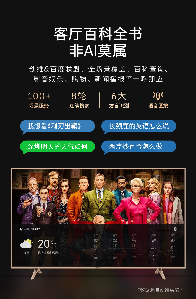创维(SKYWORTH)75A7 75英寸金属机身人工智能HDR4K超高清智能互联网液晶电视机