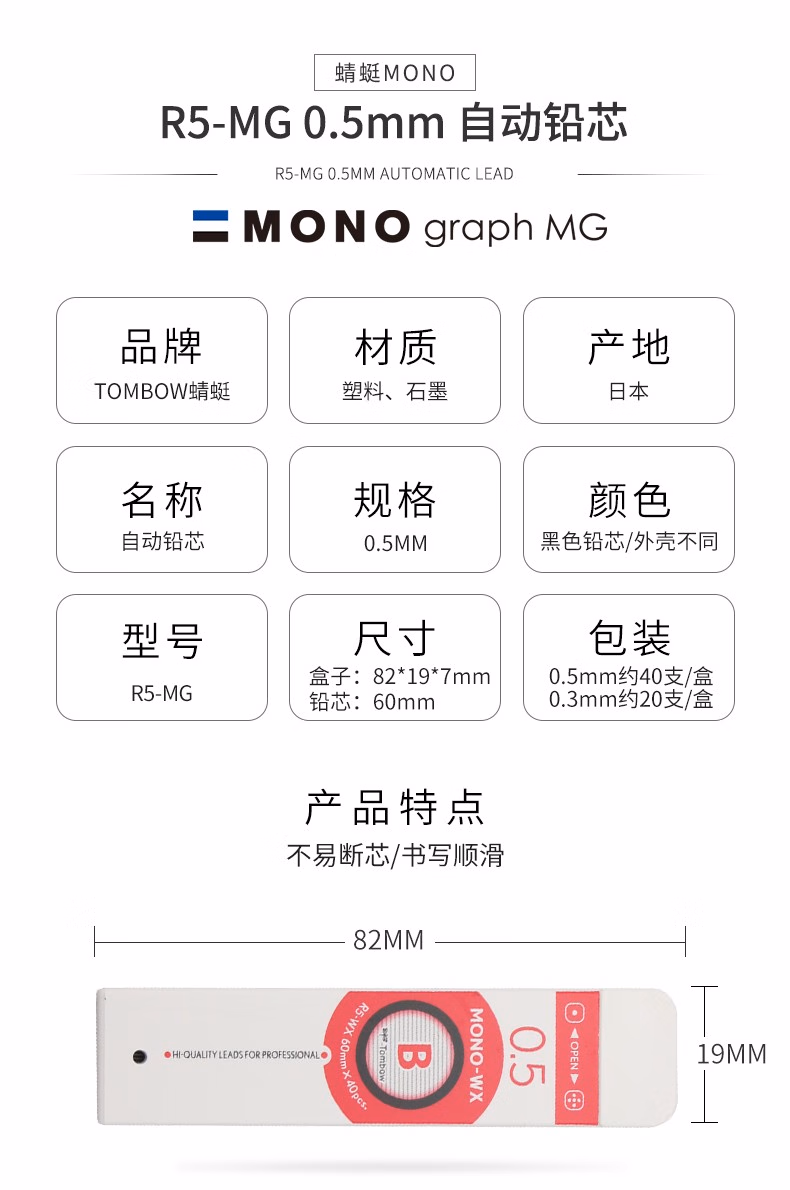 当前位置: 首页 > 办公文具 > 日本tombow蜻蜓 R5-MG系列 0.5mm 不易断学生自动铅替芯 自动铅笔芯