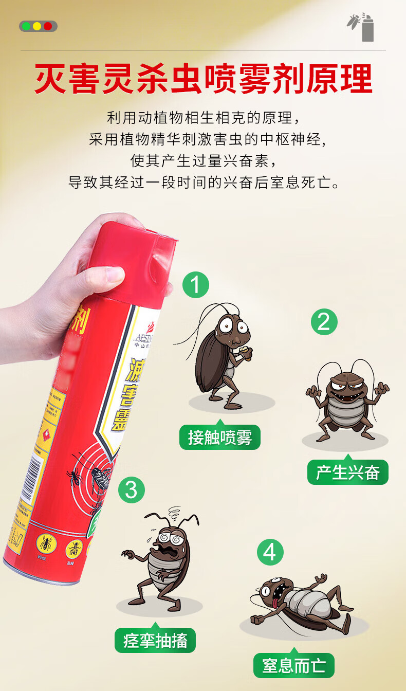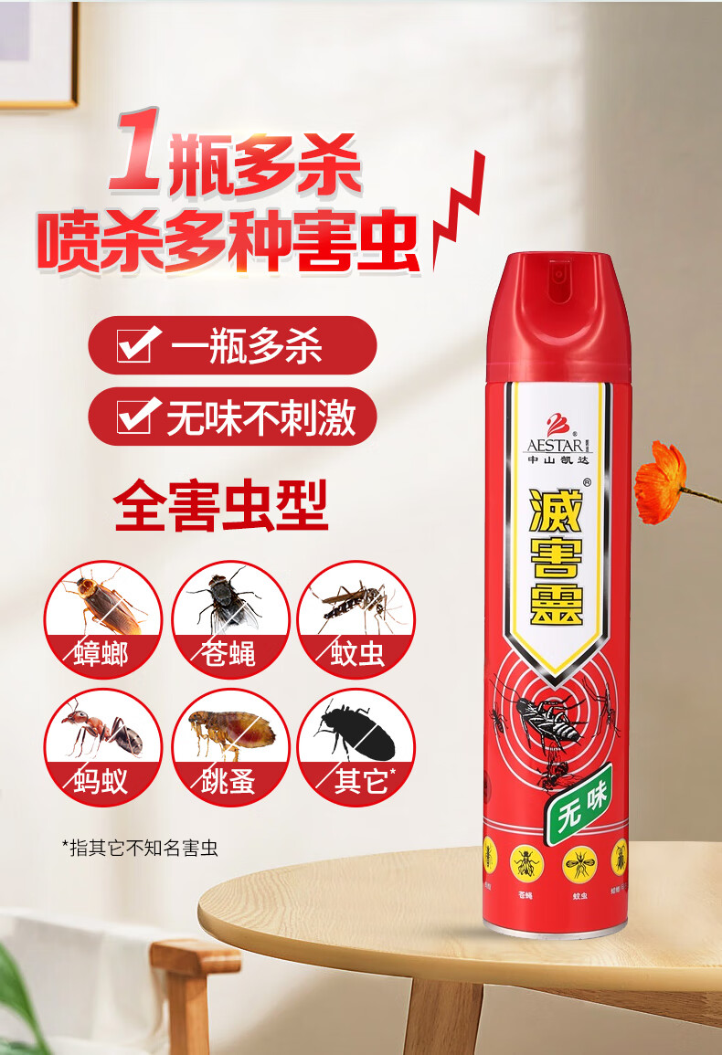 灭害灵无味杀虫剂水气雾剂基孔肯雅热灭蚊蚂蚁蟑螂药驱百虫灵药剂600ml