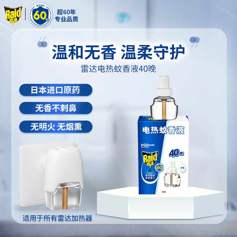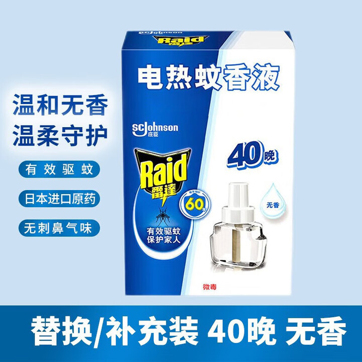 雷达(Raid)基孔肯雅热雷达电热蚊香液无香型40晚 补充液21ml