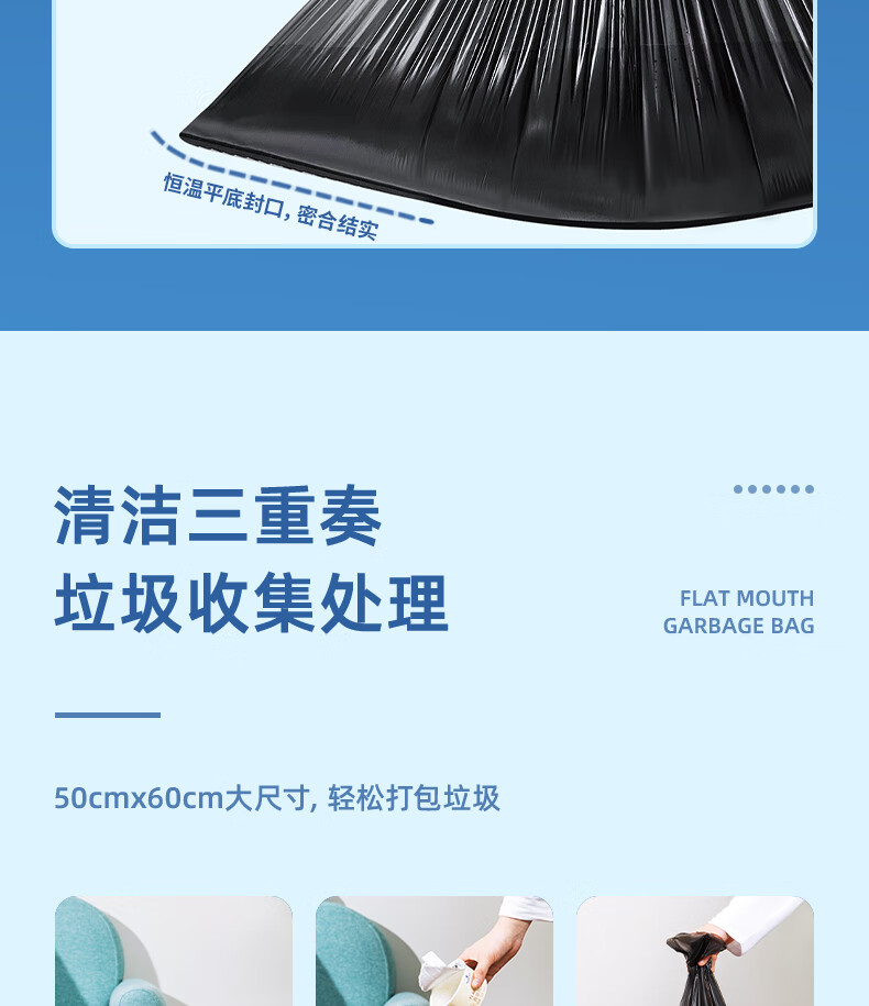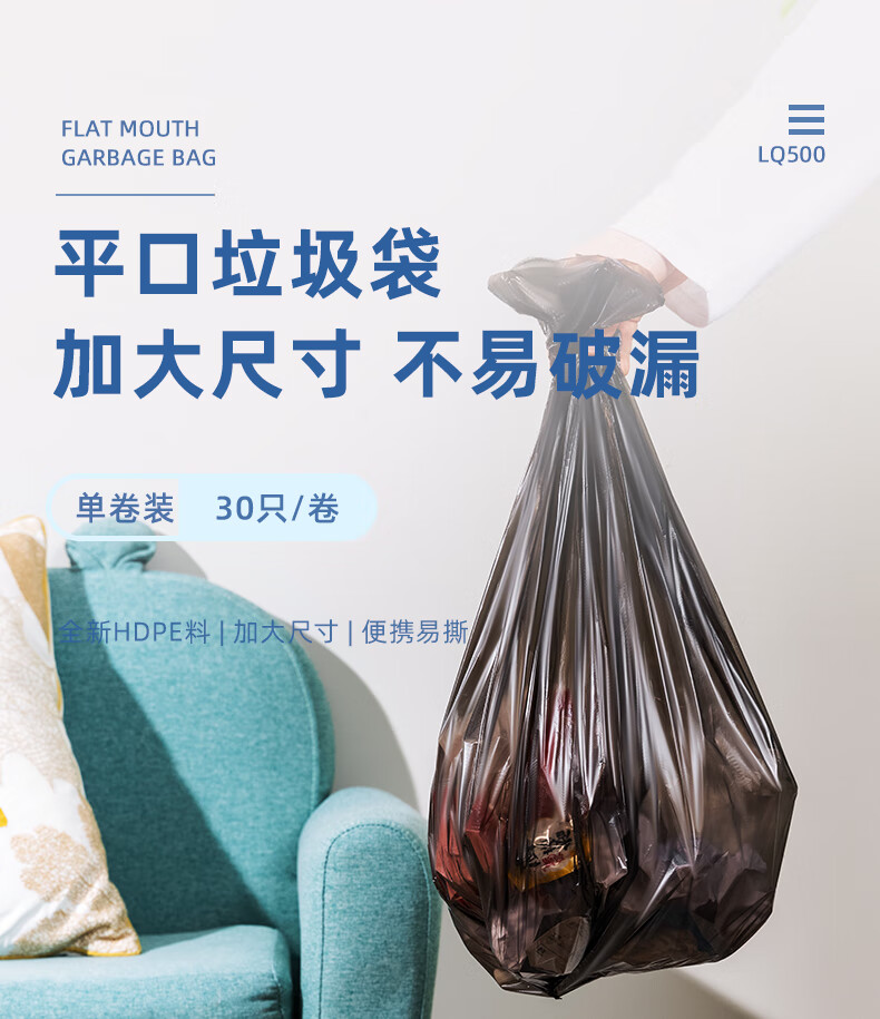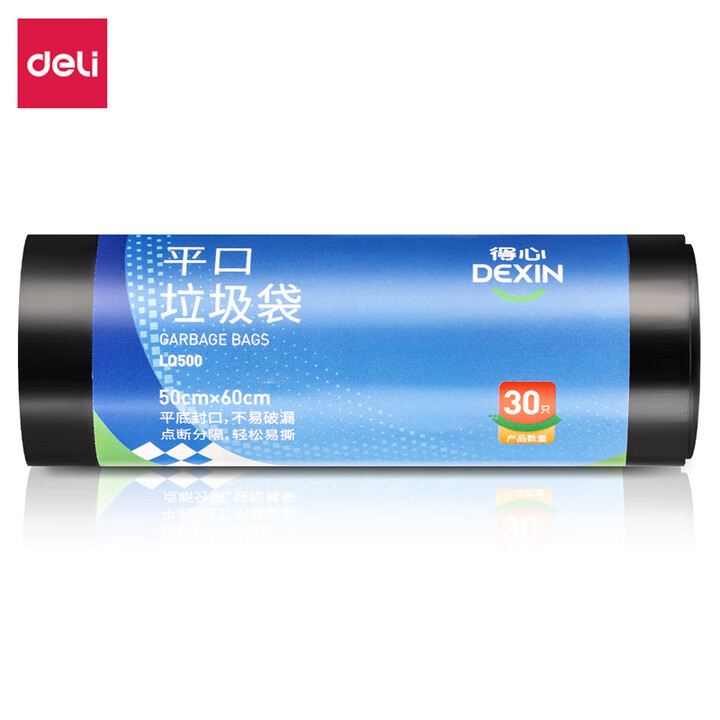 得力得心 LQ500-平口垃圾袋(黑色)(30只卷,1卷/包)