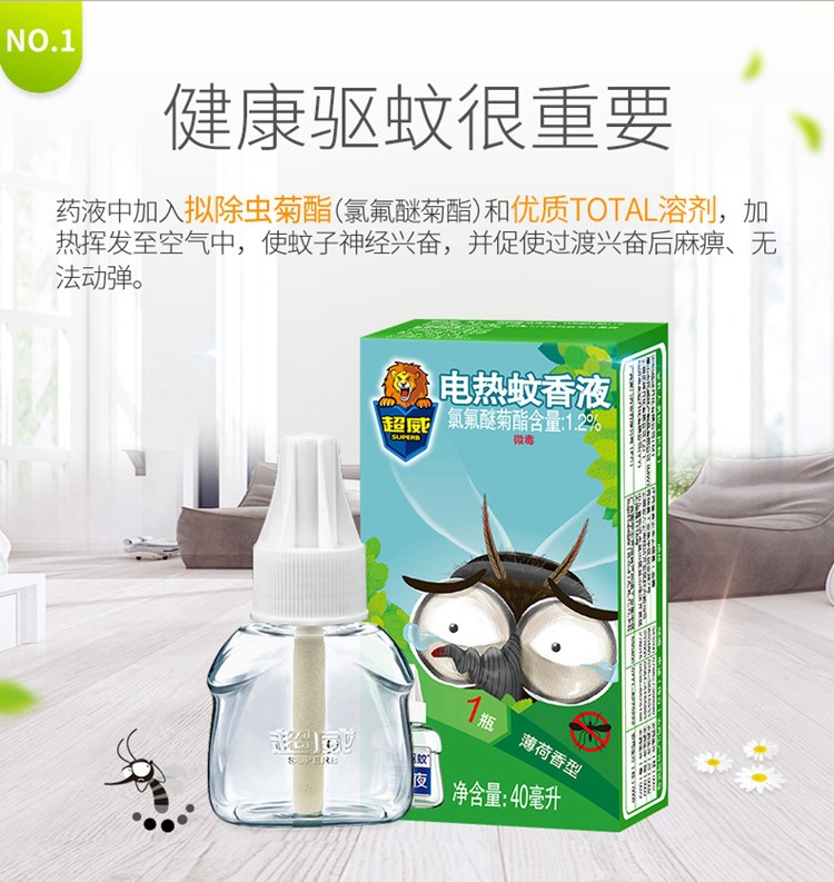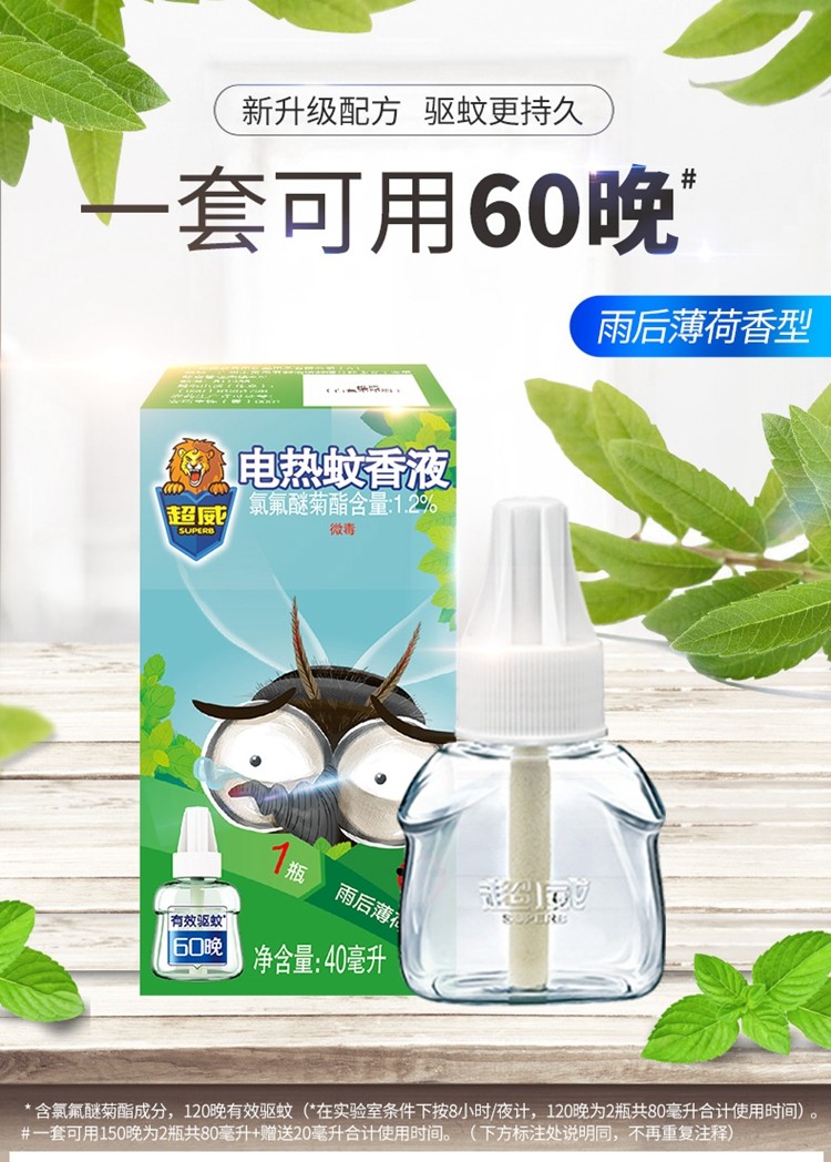 • 商品品牌:超威      型号:超威蚊液40ml
