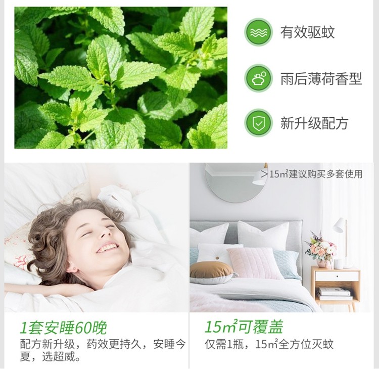 超威 电蚊香液基孔肯雅热家用雨后薄荷香驱蚊液防蚊液补充液40ml 60晚