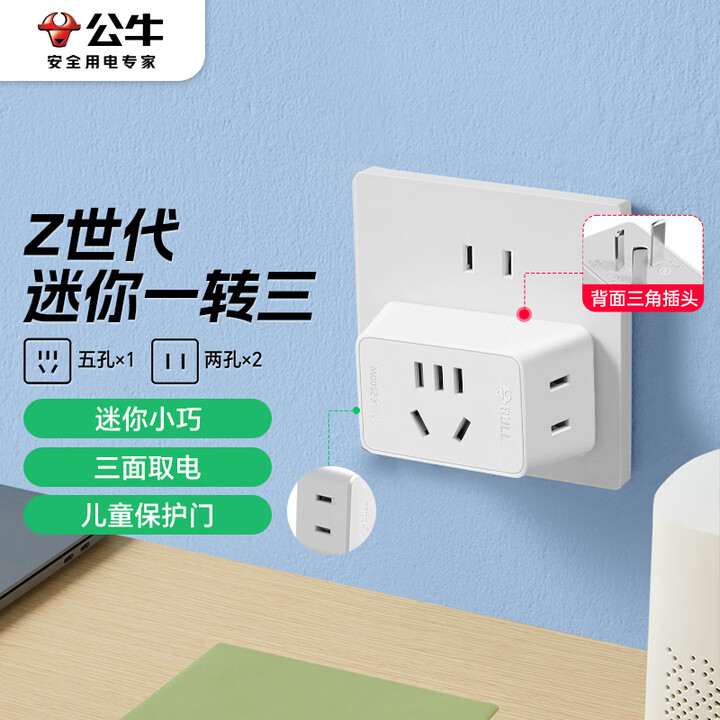 公牛(BULL)一转三插座/转换插头/电源转换器 3位无线转换插座 GN-ZA221