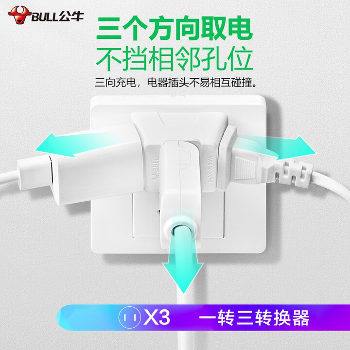 公牛(BULL)转换插头/迷你一转三插座/无线转换插座/电源转换器 3位两极插座GN-A230