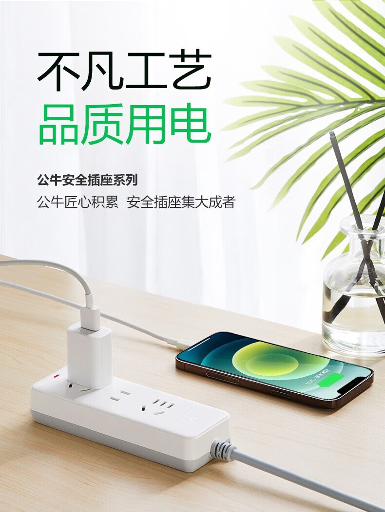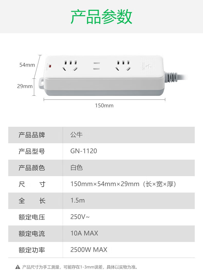 公牛(BULL)学生宿舍六孔插座家用长线公牛牌插座三孔接线板金牛电插板电源拖线板排插 1.5米3插位 GN-1120