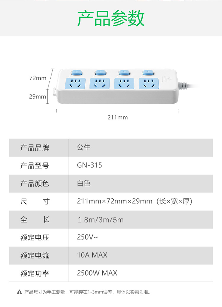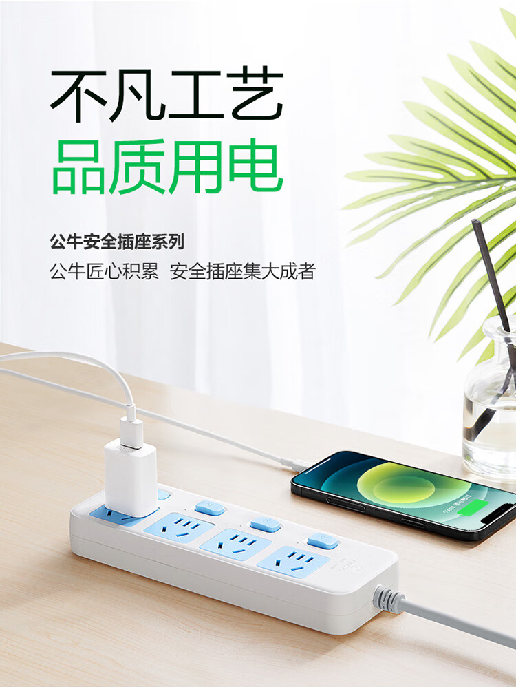 当前位置: 首页 > 办公电器 > 家用电器 > 公牛(BULL)插座/插线板/插排/排插/接线板/拖线板 4位分控全长1.8/3/5米 GN-315