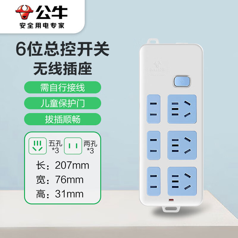 公牛(BULL) 无线插座/插线板/插排/排插/接线板 6位总控无线插座GN-402(需自行配线)
