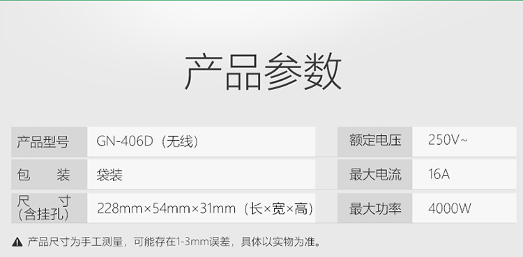 公牛(BULL)大功率电器16A空调伴侣插座/插线板/插排/排插/接线板 3位无线总控GN-406DW(需自行接线)