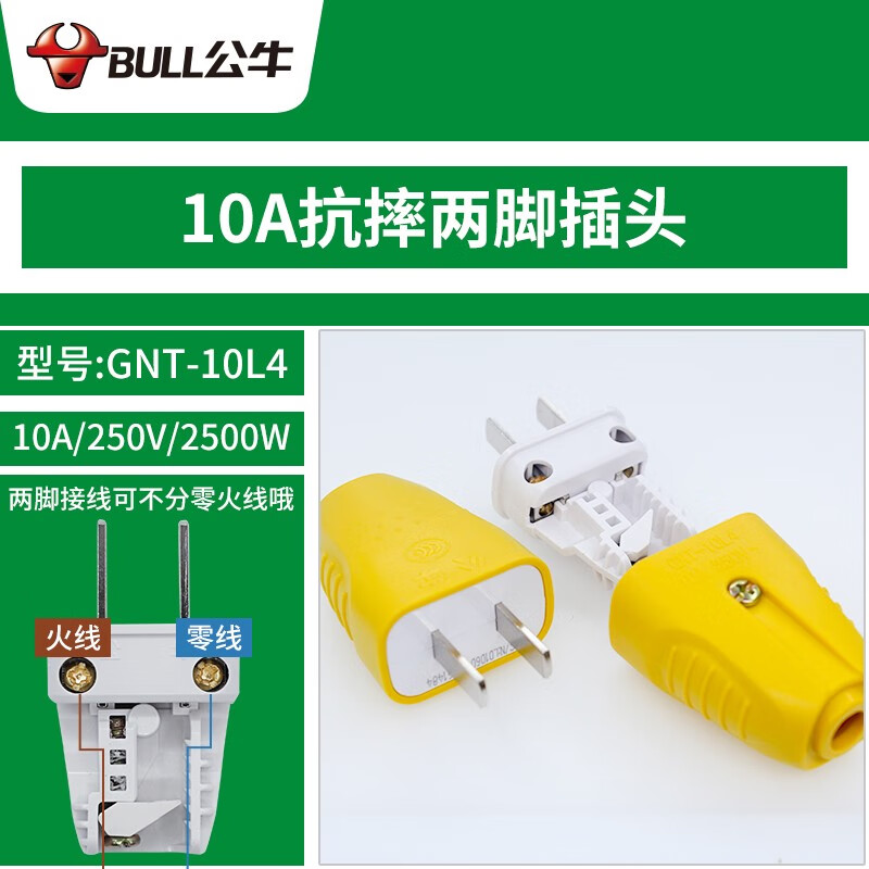 公牛 插头二脚三脚插头空调插 16安 插头电线电源插头/无线/自行接线 2脚防摔插头T-10L4