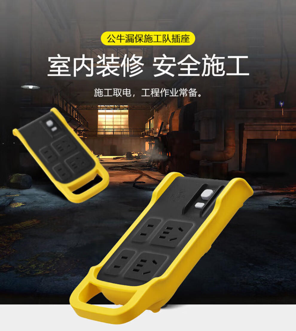 公牛(BULL) 耐摔抗摔不烂插板/插排/插拖线板/工程户外施工作业黄色插座新国标GN-C122L 漏电保护无线
