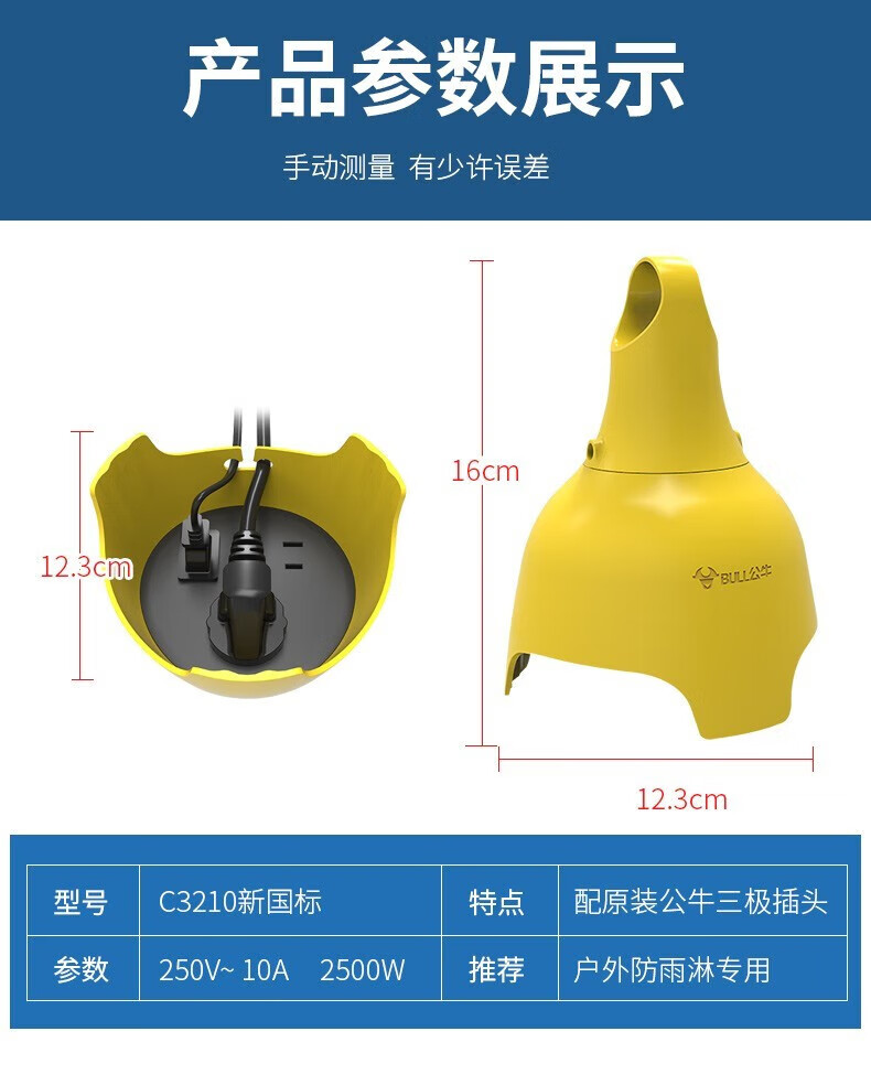 公牛(BULL)防雨淋插座/延长线插座/户外接线板/室外插板插排 GN-C3210 防雨淋无线款