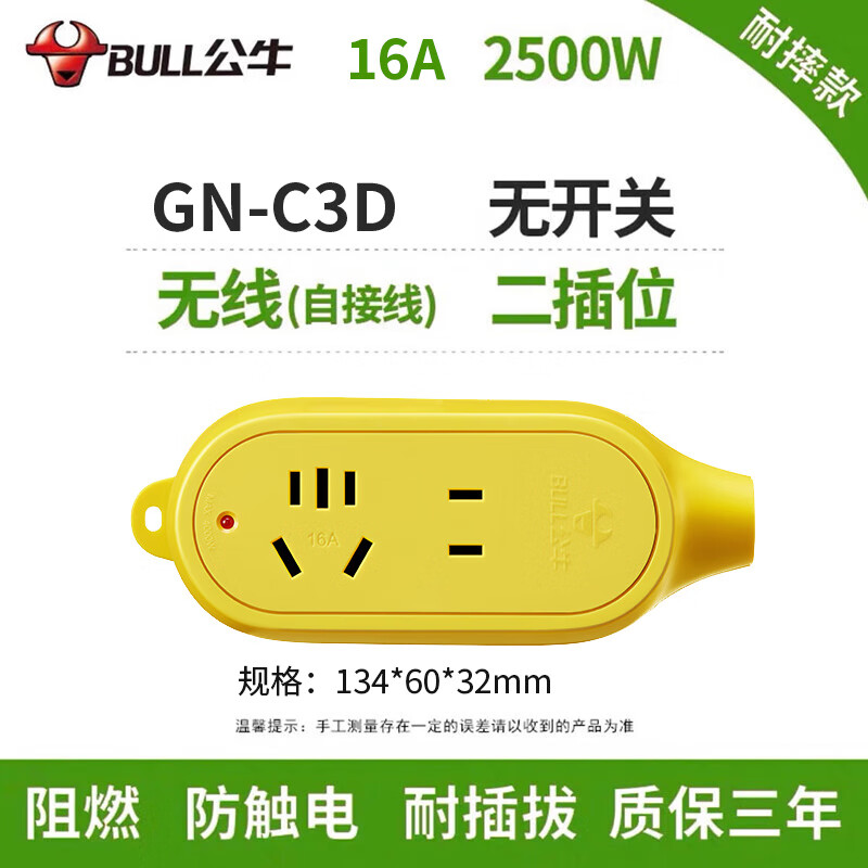 当前位置: 首页 > 电脑数码 > 电源相关 > 公牛(BULL) 插座新国标/插排/无线/自行接线/无插头无电源线 【16A二位无开关无线】GN-C3D