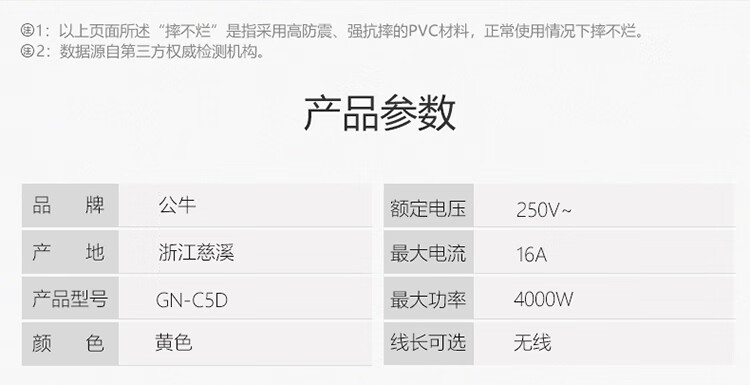 当前位置: 首页 > 电脑数码 > 电源相关 > 公牛(BULL)大功率16A插座插排插线板 工程摔不烂4位无线插座GN-C5D(需自行配线)