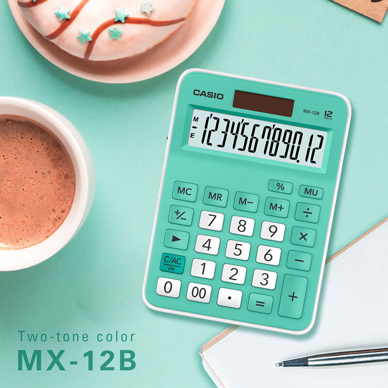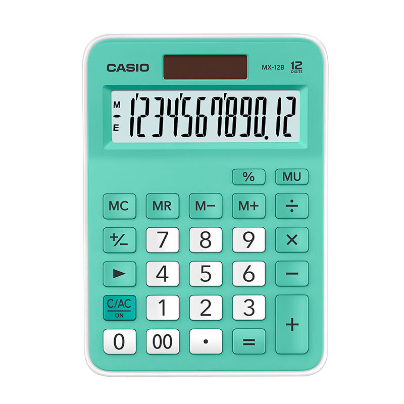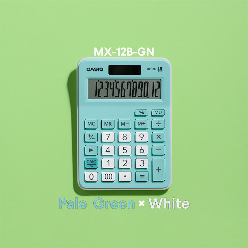 卡西欧(CASIO)MX-12B-GN小学生计算器无语音小型款可爱计算机器太阳能双电源(绿色)