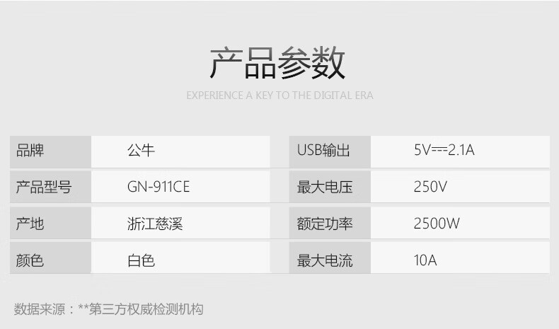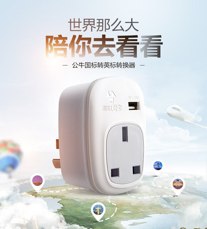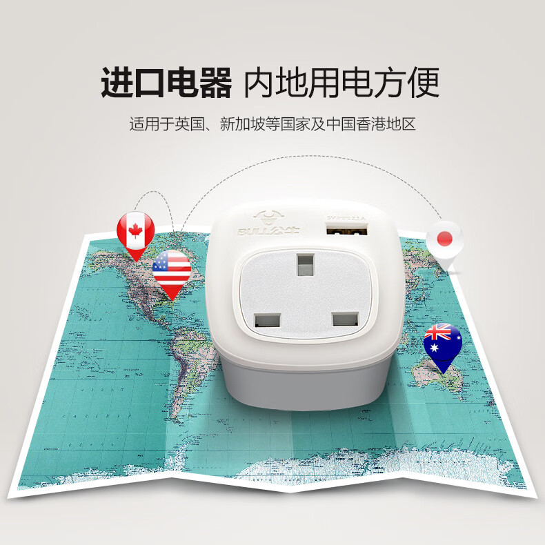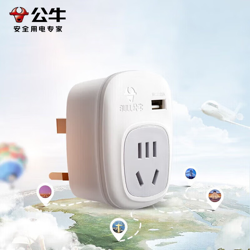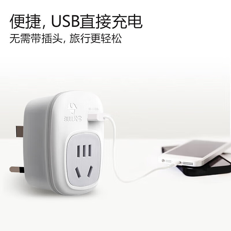 公牛(BULL)电源旅行转换器插座/转换插头带USB/英标转国标/美标转国标(国外使用) GN-911(CE、A、E)