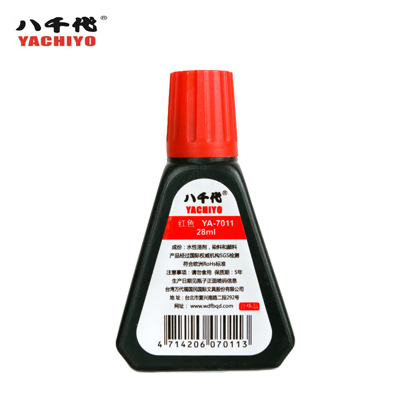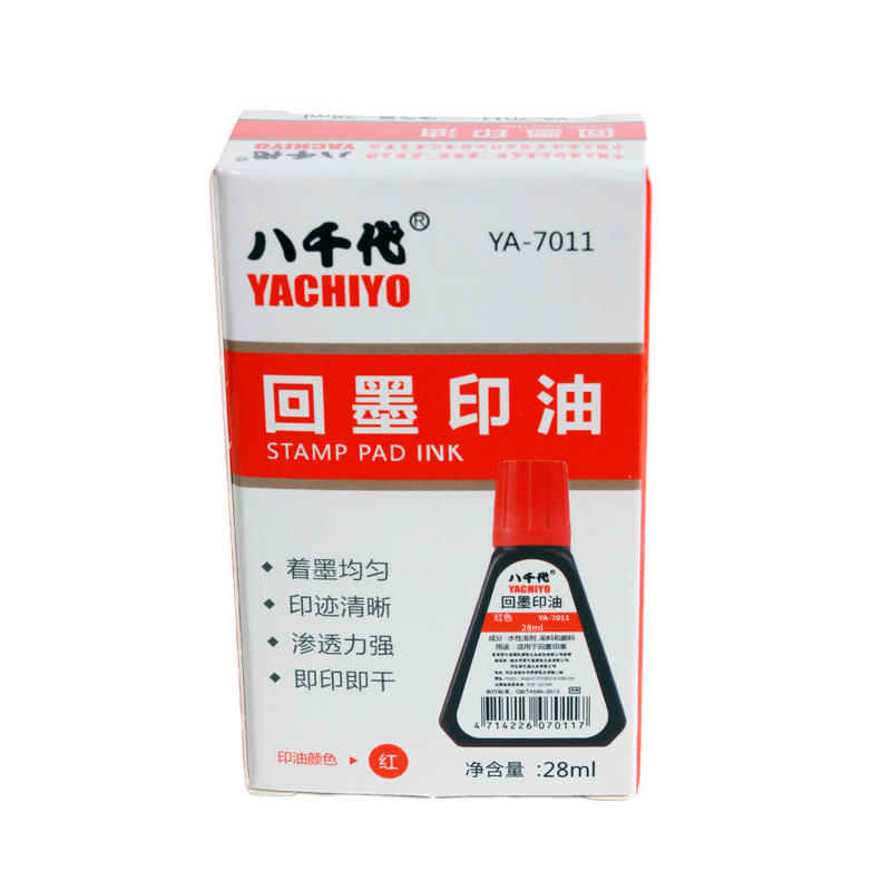 当前位置: 首页 > 办公文具 > 财务用品 > 八千代 YA-7011回墨印油水性印迹鲜艳不洇纸回墨印章专用印油 红色 12瓶/28ml