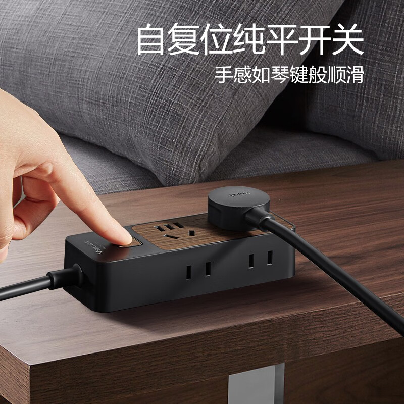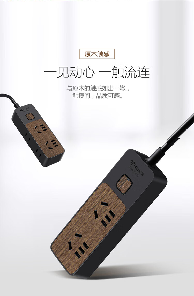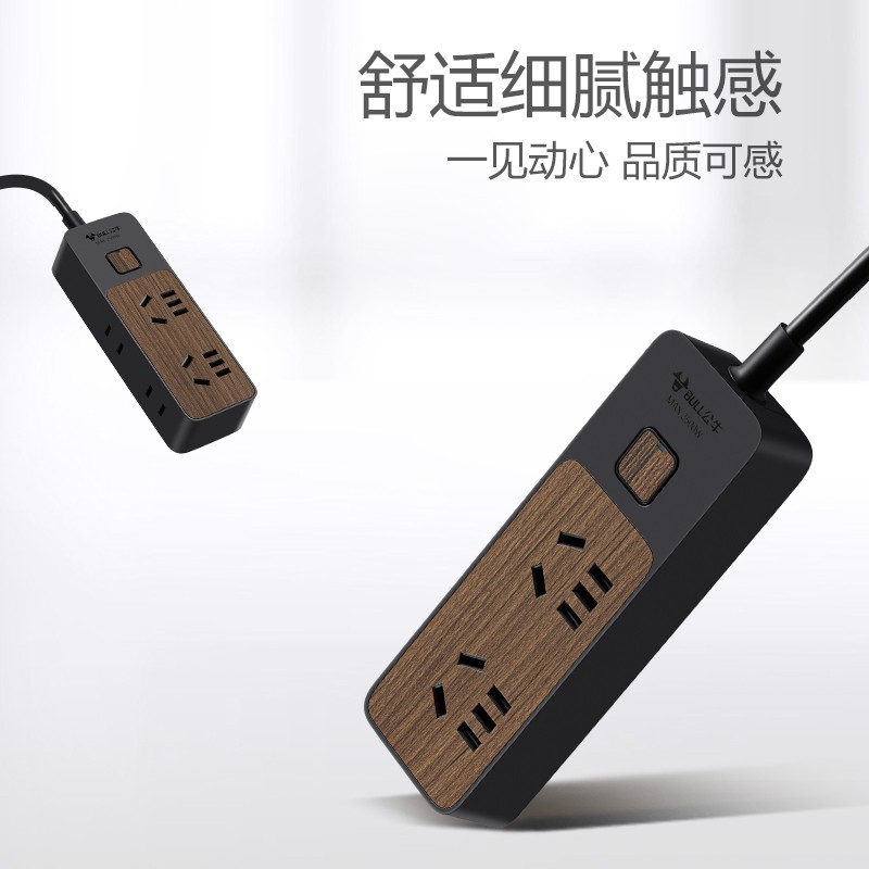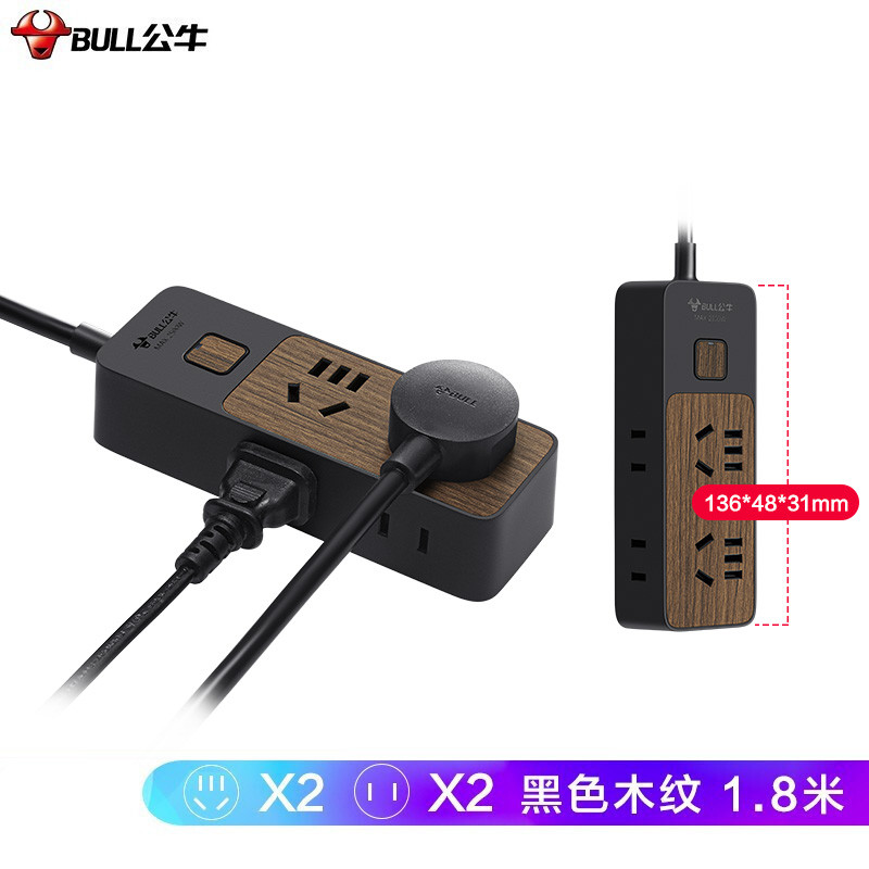 公牛(BULL)GN-R1220 插座/插线板/插排/排插/接线板/拖线板 4位总控1.8米 黑色木纹