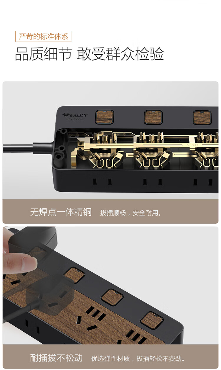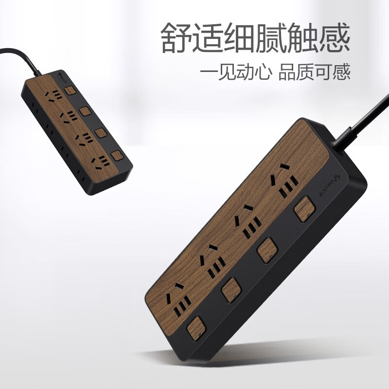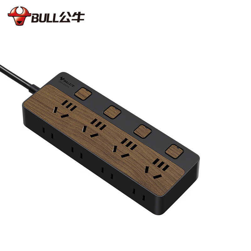 公牛(BULL)GN-R1443 插座/插线板/插排/排插/接线板/拖线板 8位分控1.8米 黑色木纹