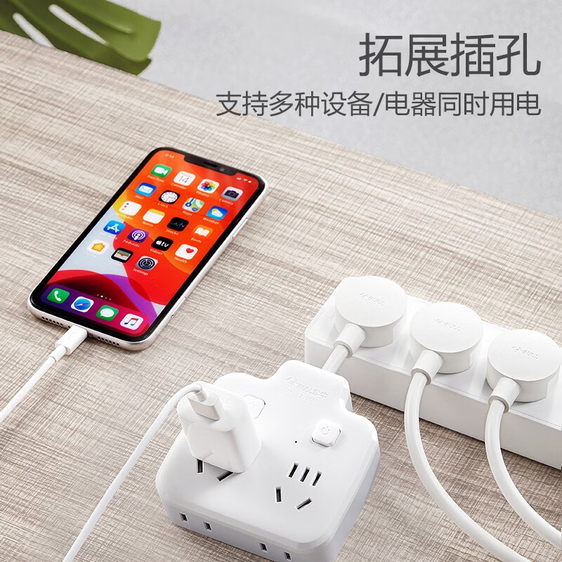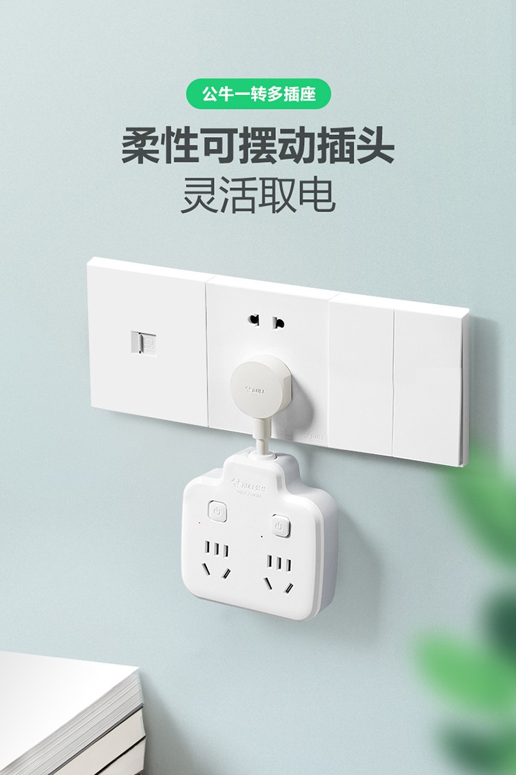 公牛(BULL)4位分控 GN-97223 柔性转换插头/品字形一转四插座/无线转换插座/电源转换器