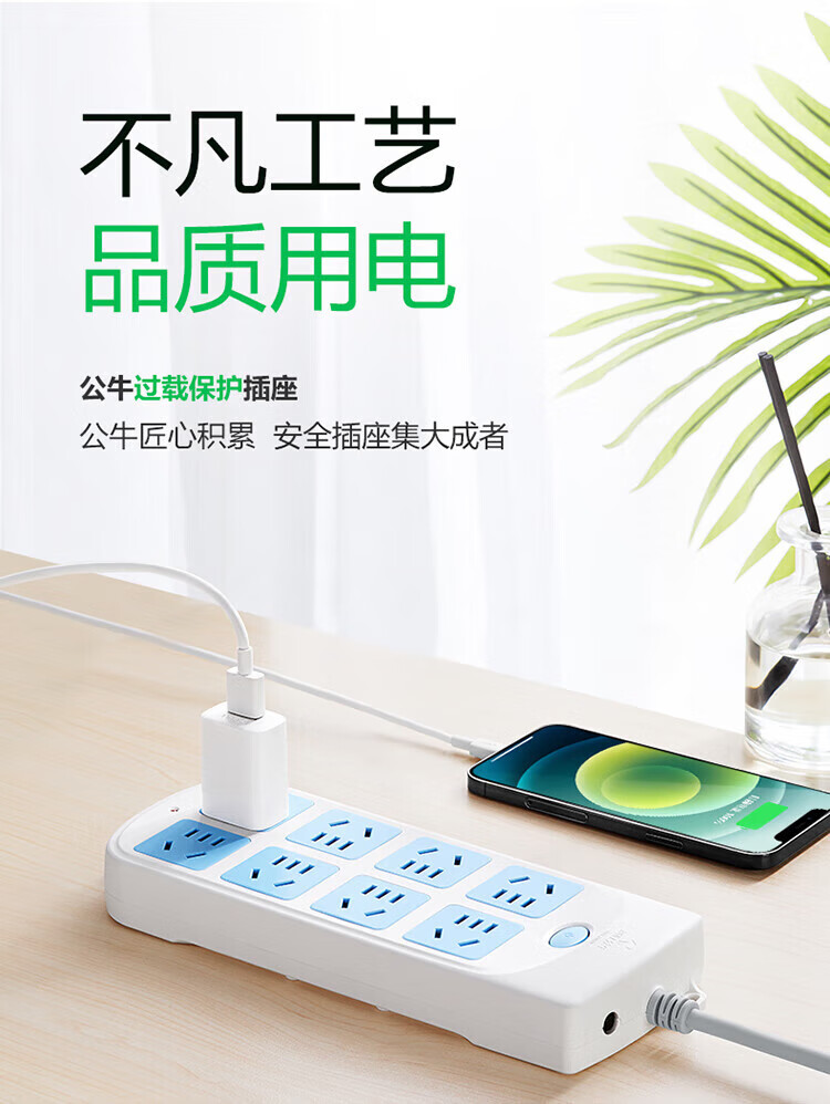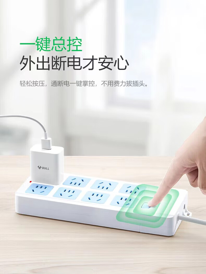 公牛(BULL)GN-604 过载保护新国标插座/插线板/插排/接线板/拖线板 8位总控无线 (需自行配线)