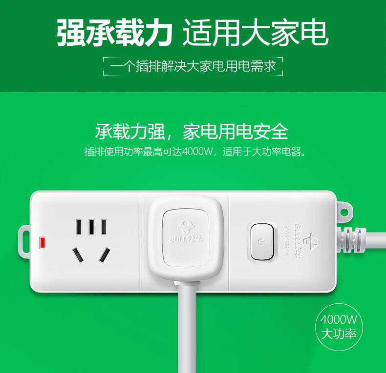当前位置: 首页 > 电脑数码 > 电源相关 > 公牛(BULL)GN-606D 插座/接线板/插排/插线板/拖线板/插板 4000W大功率16A空调热水器 全长1.8米/3米