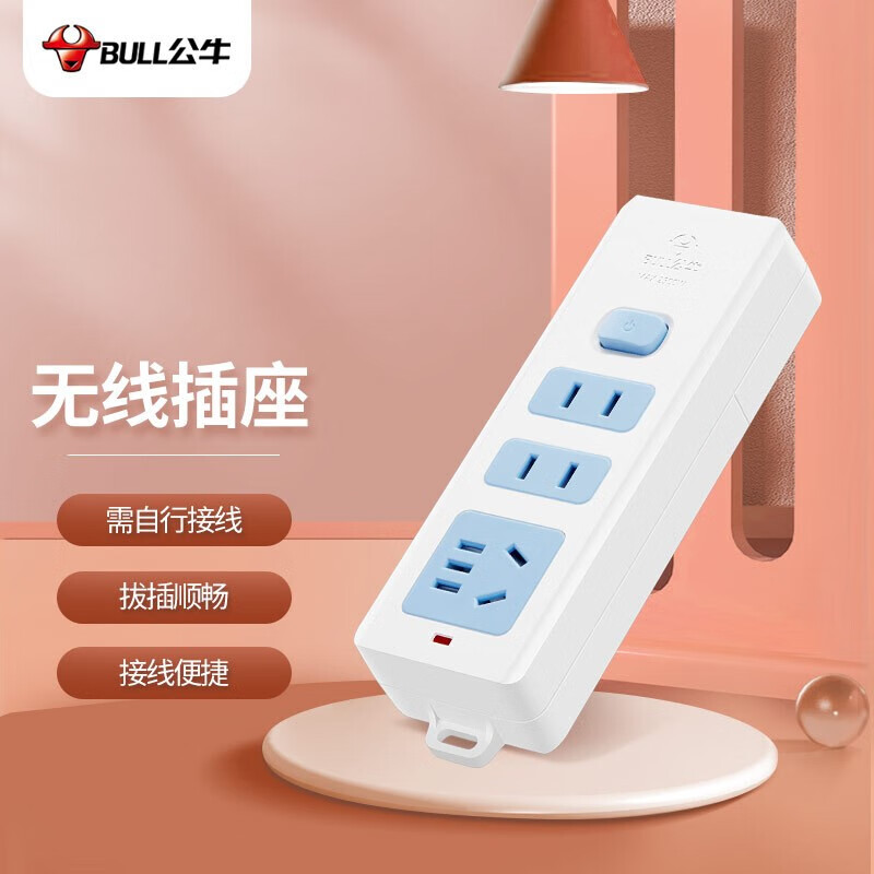 公牛(BULL) GN-618 插座新国标/插排/无线/自行接线/无插头无电源线 【3位总控无线】