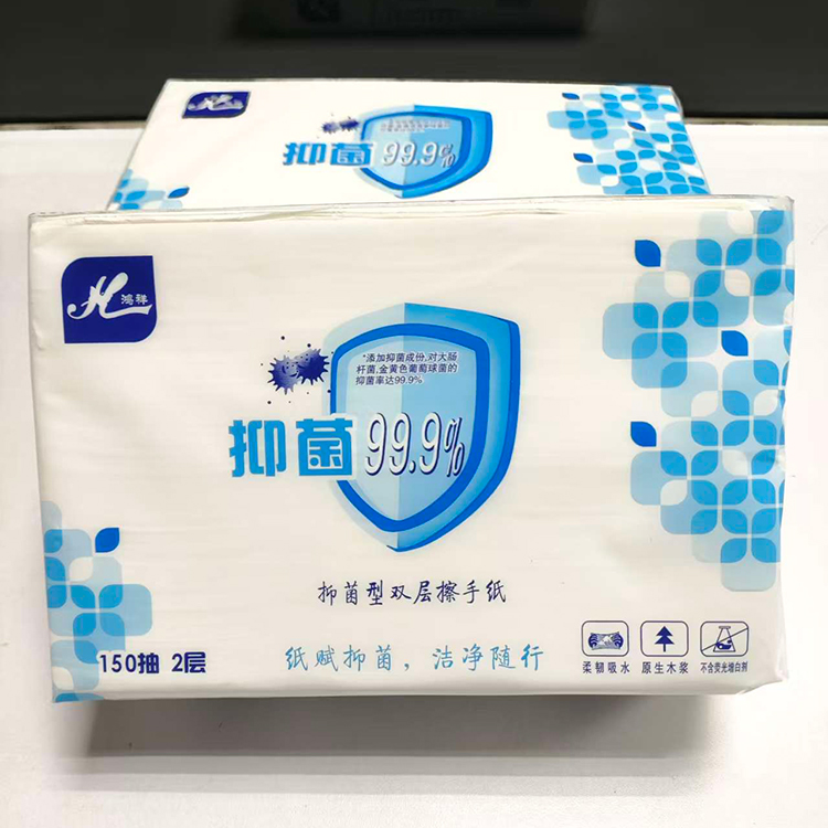 鸿祥 HC419 抑菌型双层无香擦手纸 原生木浆/柔韧吸水/擦手纸厕所干手用纸150抽2层/包 (20包/箱)