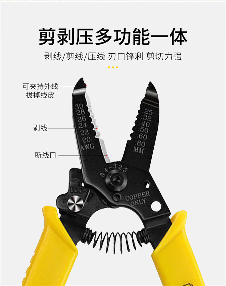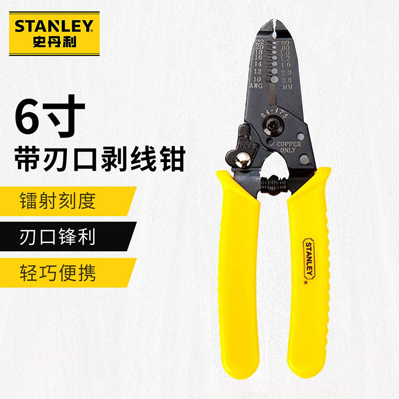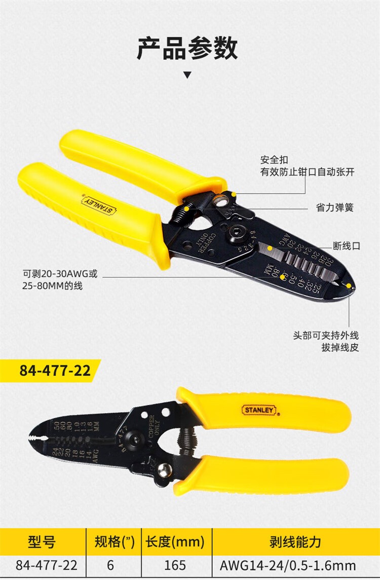 史丹利(STANLEY)84-477-22 带刃口剥线钳AWG16-26 6”多功能剥线钳电工专用