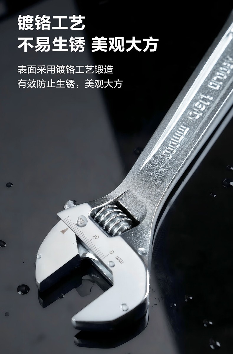 得力(deli)多功能活动扳手光柄万能活口扳手活络扳手激光刻度8英寸