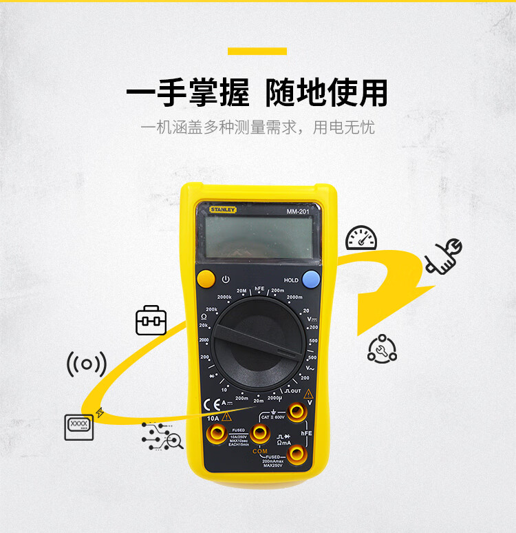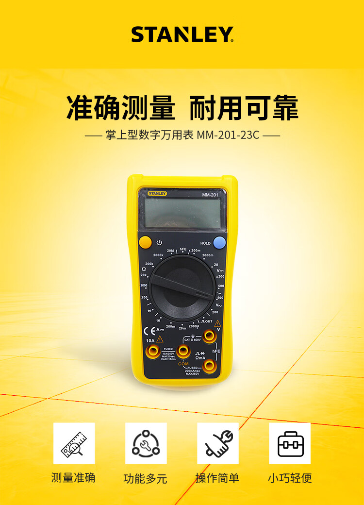 当前位置: 首页 > 五金/工具 > 史丹利(STANLEY)MM-201-23C 掌上型数字万用表/电工专用防烧式多用表/家用高精度背光数显式电流表