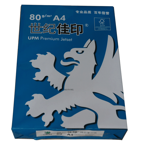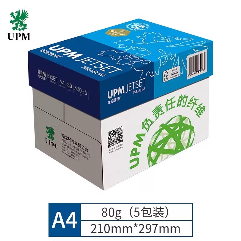 颜色 [品牌中文] 世纪佳印 [品牌英文] UPM [规格] 80g [纸张幅面] / [包装数量] 1包/500张 5包/箱 [13位条形码] / [颜色] 白色