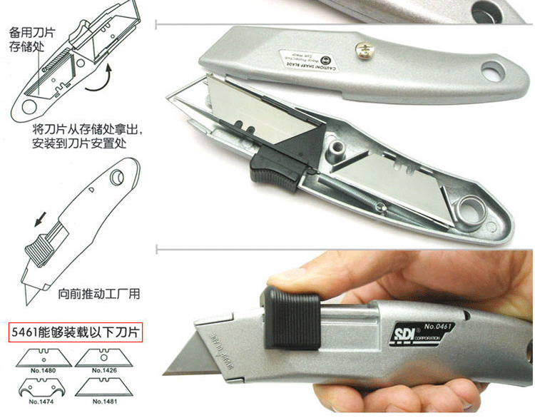 SDI手牌5461 合金地毯刀毛毯皮革夹板铝塑板刀美工刀