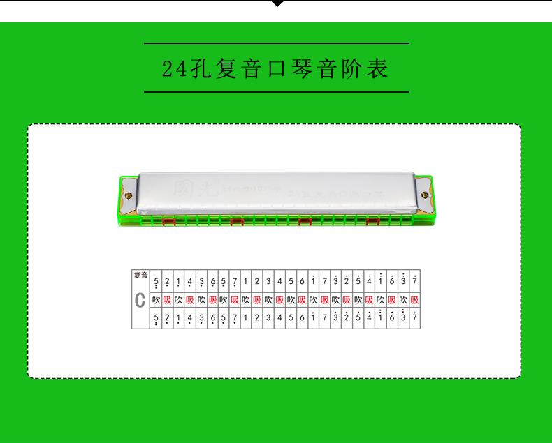口琴国光24孔复音初学者儿童学生高音成人自学专业演奏级重音口琴 回声 c调(轻音)