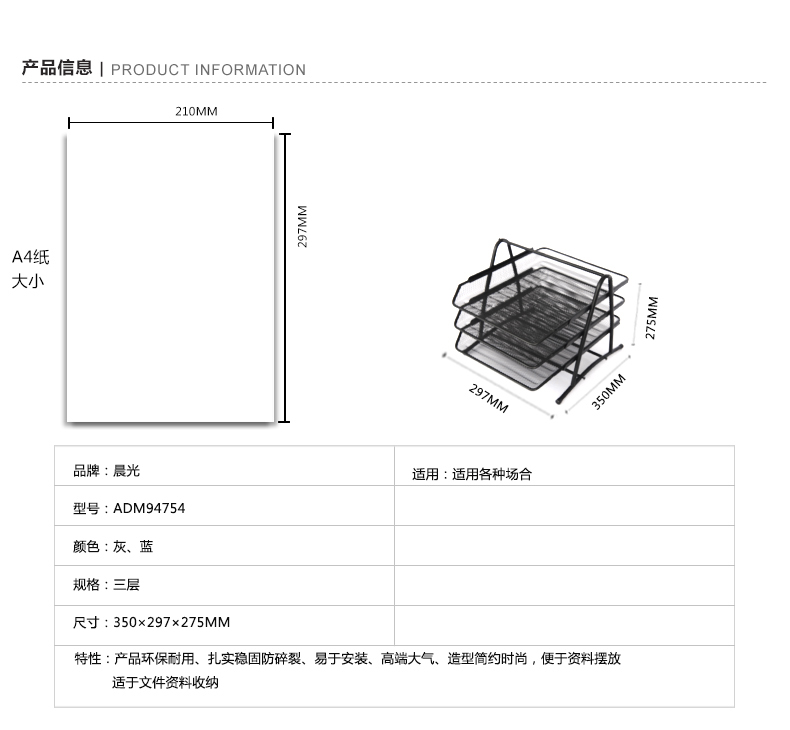 当前位置: 首页 > 办公文具 > 晨光ADM94754 文件盘A4/3层资料架金属文件盘铁网 三层文件盘