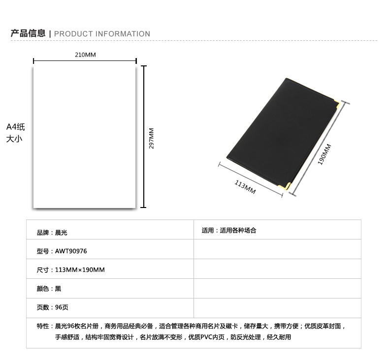 当前位置: 首页 > 办公文具 > 晨光 软皮面名片册 96张名片夹 96枚名片本 金属边名片薄