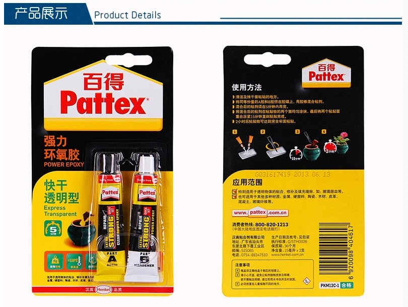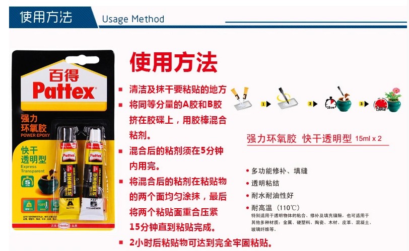 当前位置: 首页 > 办公文具 > 德国汉高百得强力AB胶 透明快干AB胶水 快固环氧树脂胶30ml