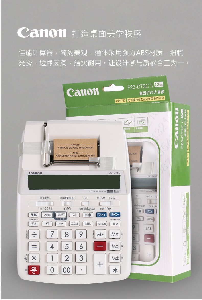 佳能(Canon)P23-DTSC办公出纳会计财务双色打印型计算器皮行商务银行商超收银餐厅酒店计算机 P23-DTSC计算器