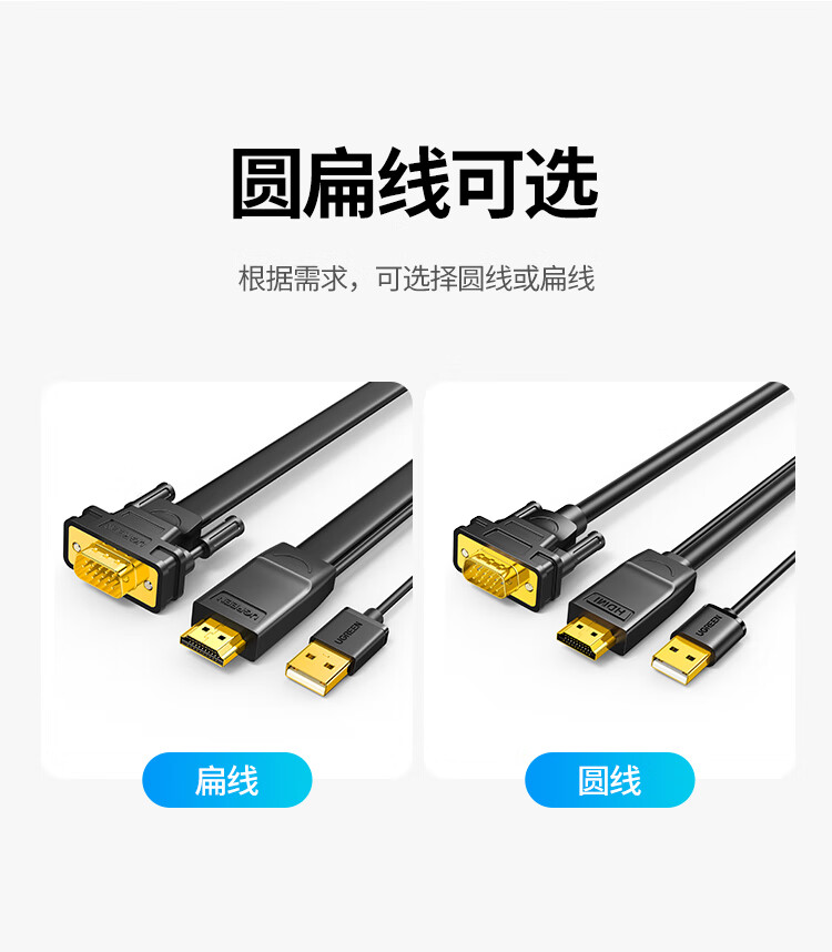 绿联 HDMI转VGA线高清视频转换器转接头适用小米盒子笔记本电脑连接显示器投影仪1.5米扁线 40267