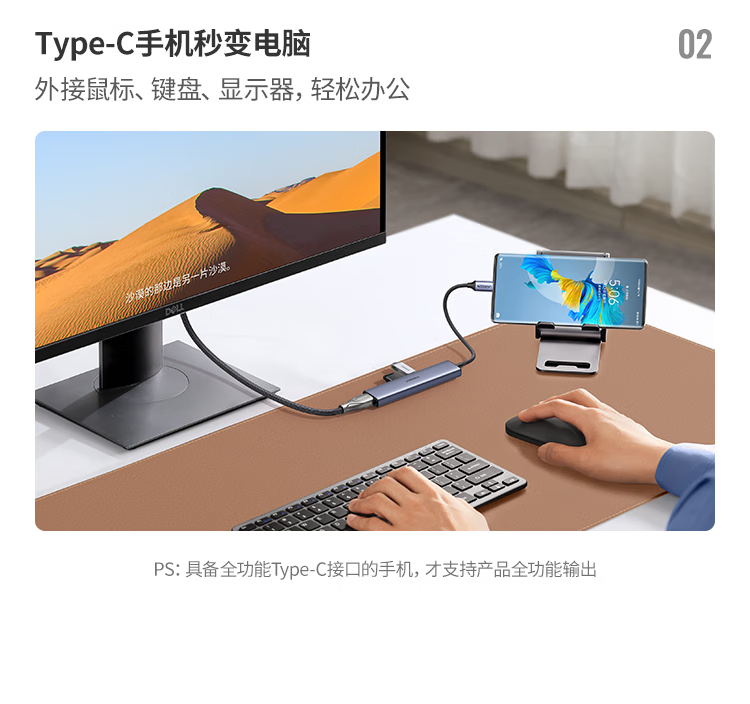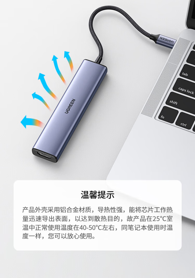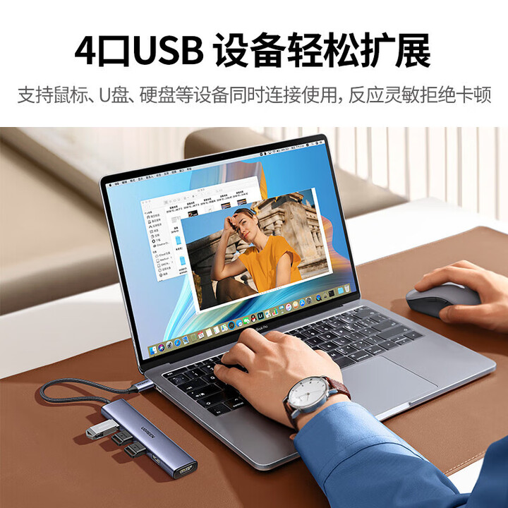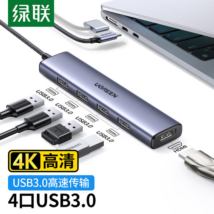 绿联(UGREEN)CM478 Type-C扩展坞 HDMI转接头拓展坞USB-C3.0分线转换器适用笔记本电脑iPadair平板 90370