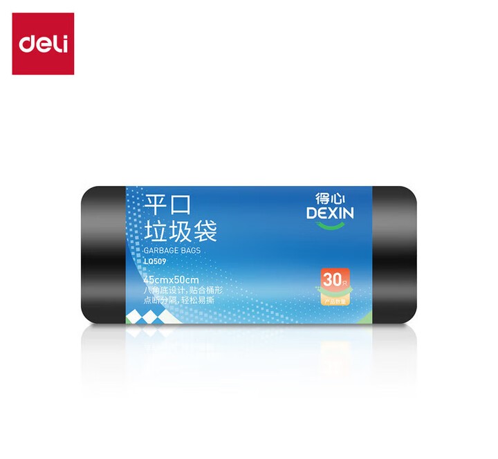 得力(deli)LQ509 得心垃圾袋八角底封口不易破漏45x50cm(黑色)(30只卷)1卷/装