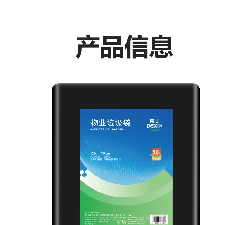 当前位置: 首页 > 生活用品 > 日用百货 > 得力(deli)LQ196 加厚物业垃圾袋平口塑料袋 保洁袋120x140cm(黑色)(50只/包)
