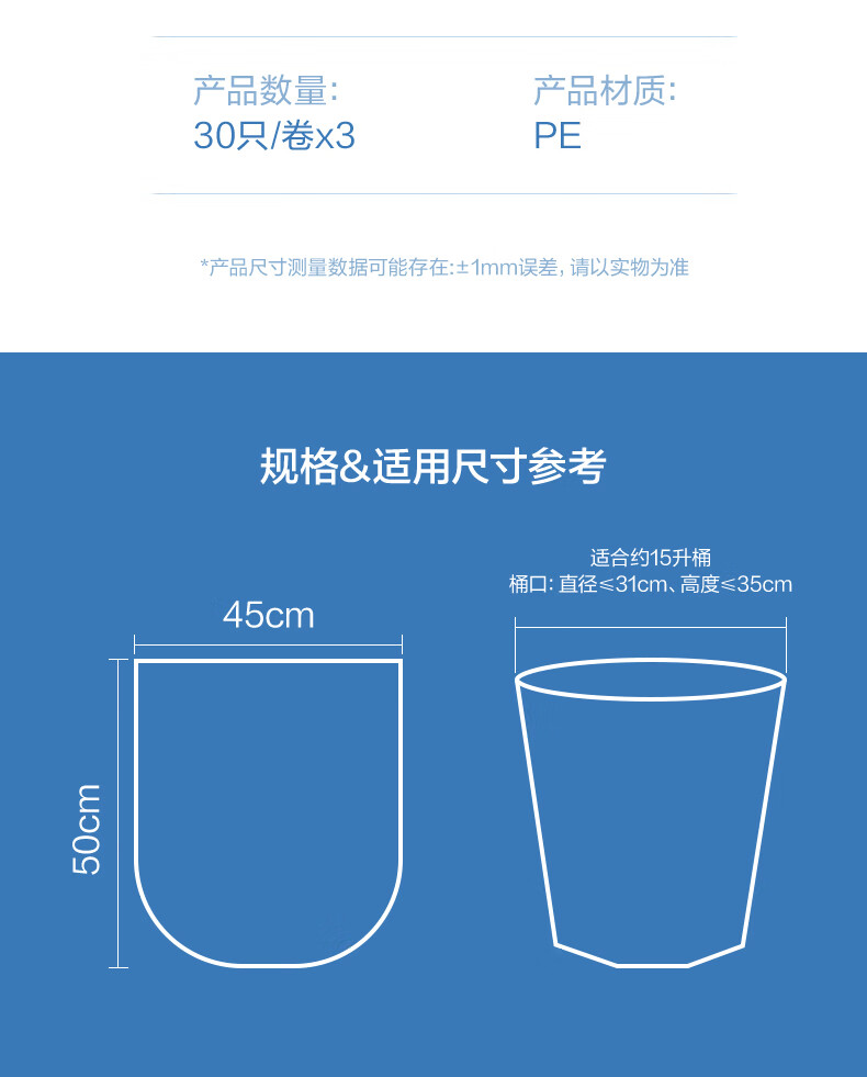 当前位置: 首页 > 生活用品 > 得力LQ512得心垃圾袋办公生活保洁垃圾袋子50x55cm黑色(3卷/包)