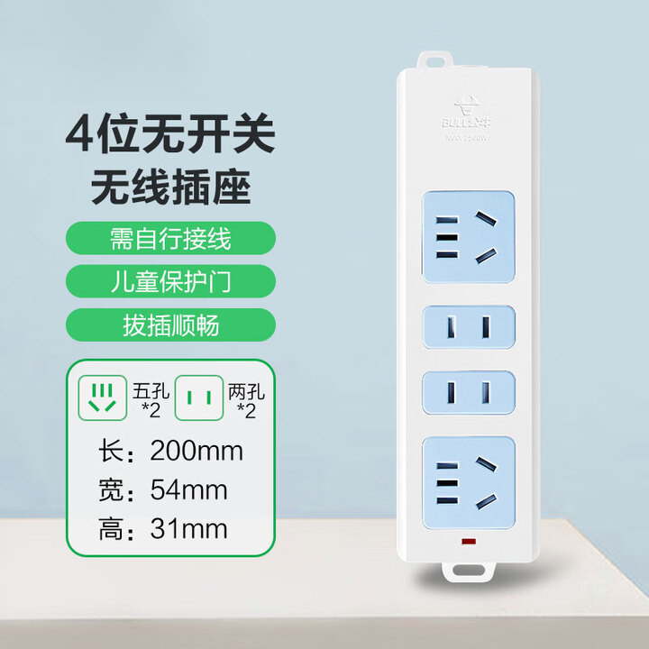 公牛(BULL)插座/插线板/插排/排插/接线板/拖线板 4位无线插座 GN-101 无线(需自行配电源线和插头)