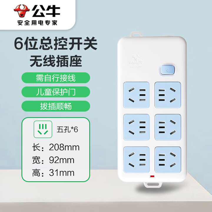 公牛(BULL)无线插座/插线板/插排/排插/接线板 6位总控无线插座GN-109K(需自行接线)