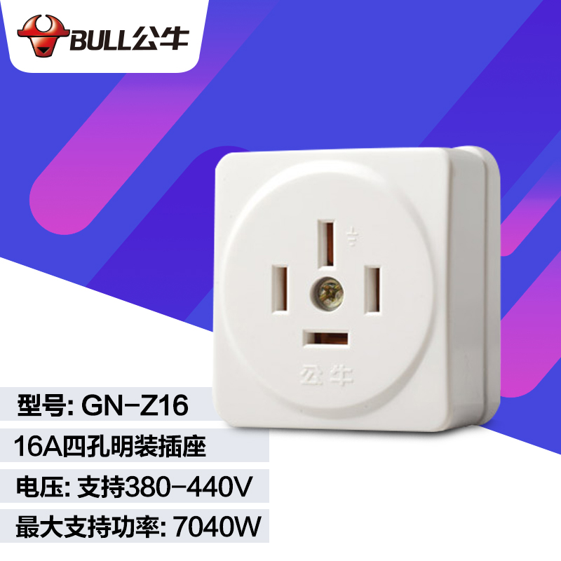 公牛 三相四线插头插座16A工业380V大功率32A 440伏插座25安4扁脚 16A明装四脚插座 GN-Z16_电源相关_电脑数码_七雅聚品-广州市雅阅文化用品有限公司