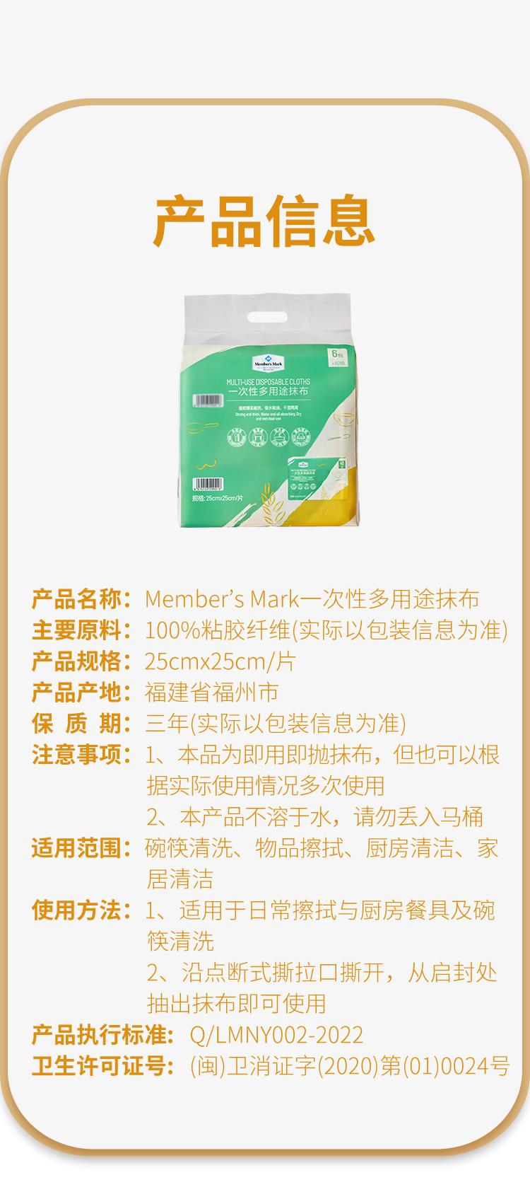 当前位置: 首页 > 生活用品 > 日用百货 > 清洁个护 > Members Mark山姆 一次性多用途抹布 抽取式洗碗巾厨房清洁去油污干湿两用强韧耐洗 40抽/包(25*25cm)