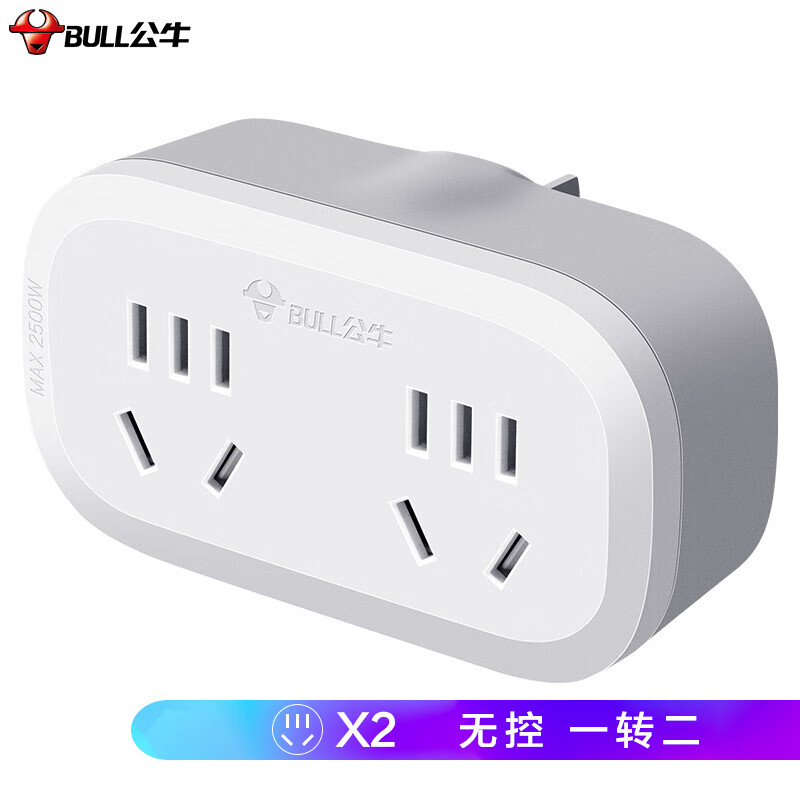 公牛(BULL)GN-903 一转二插座/转换插头/电源转换器 适用于卧室、厨房 2位无线转换插座