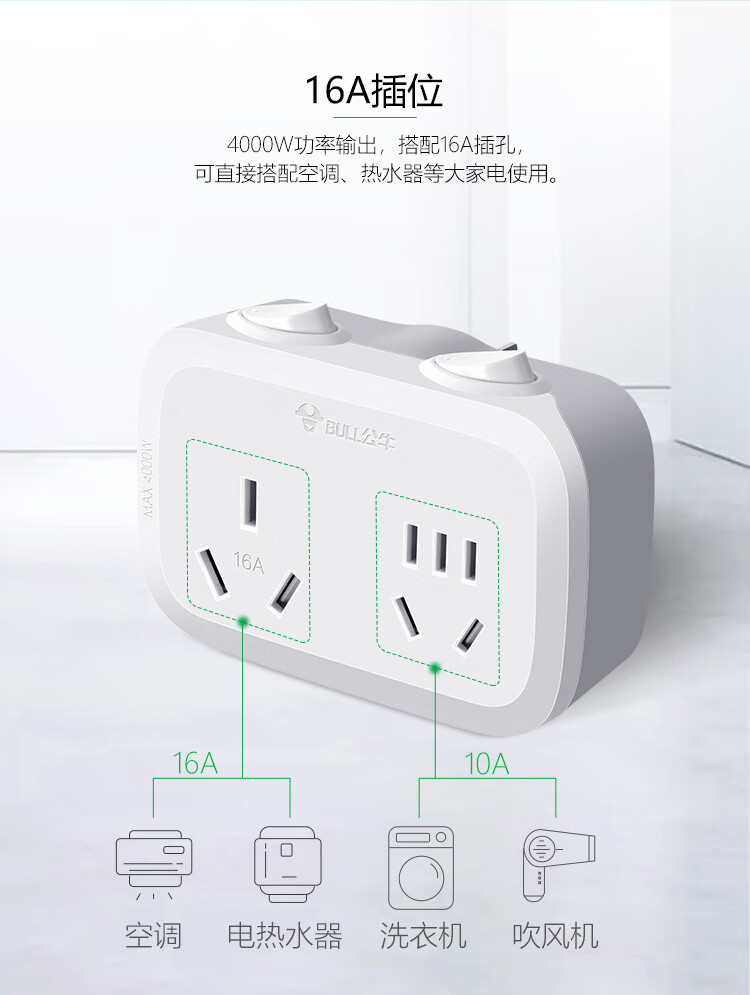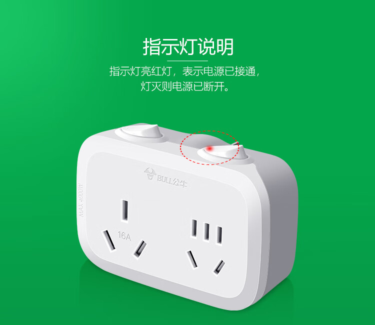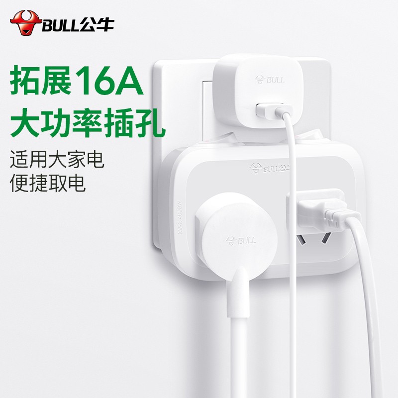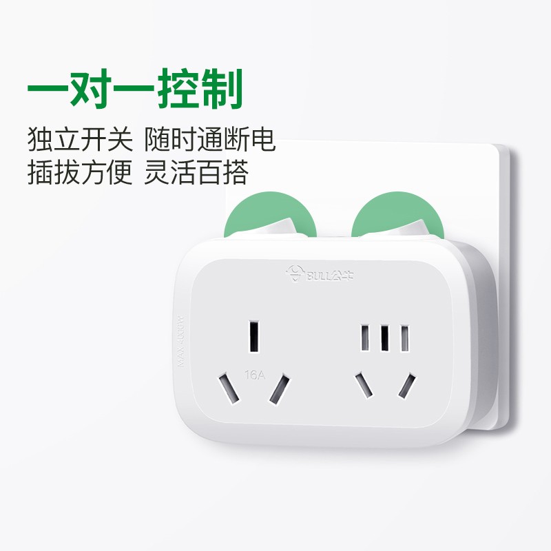 公牛(BULL)GN-9323D 大功率一转二插座/一转多分控转换插头/电源转换器 2位分控开关无线转换插座